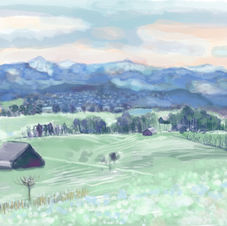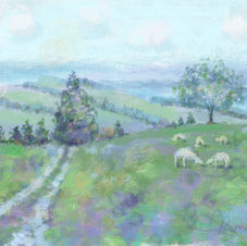 Painterly landscape style, easily reproduced electronically on cards, canvas, online, etc.